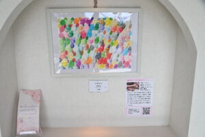 障がい者の活躍の場を広げる活動の応援も兼ね、去年10月から作品のレンタルを受けていただいております。絵の展示で来客を楽しませることができ、作家は報酬と発表の場を得られ、当法人は障がいの方の可能性を広げる活動費を得る仕組みになっています。