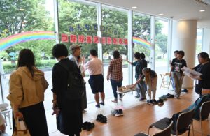 このイベントはいわきアリオスのこどもプロジェクト「あそび工房『⤴(びよーん)』」(主催:いわきアリオス)と、「人権ユニバーサルデザイン推進事業」(同:福島県、福島県人権啓発ネットワーク協議会)を兼ね、10月4日に開かれました。企画運営を担当したのは当法人で、行政から依頼を受けたイベント運営は初めてでした。