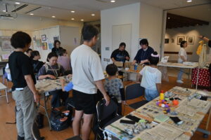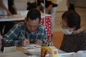当法人がプロデュースした交流イベント「みんなでつくる つながるアートひろば」がこのほど、福島県いわき市のいわき芸術文化交流館「アリオス」で初めて開かれました。アートを通した触れ合いで差別や偏見を取り除く“心のバリアフリー”を目指し、はなのころメンバーも「好きなこと」でワークショップの講師を務めるなど交流。会場は子どもからお年寄りまで、障がいのある人もない人も多くの来場者で盛り上がりました。
