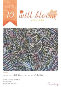 はなのころは会報誌「will bloom(ウィル・ブルーム)」の3号が完成しました。今号の表紙は千鶴の作品。特集でははなのころアパレル「8756(ハチナナゴーロク)」の歩みを紹介しています。3カ月に1回発行。