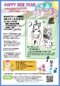 障がいの有無に関わらず交流を楽しむ「はなのころパーク」が今月1月25日(日)13時半から、福島県いわき市の中央台公民館で開かれます。今回は作品発表のほか、ワークショップ「墨で絵を描こう」を予定しています。参加無料。末尾のフォームから申し込みを受け付けます。