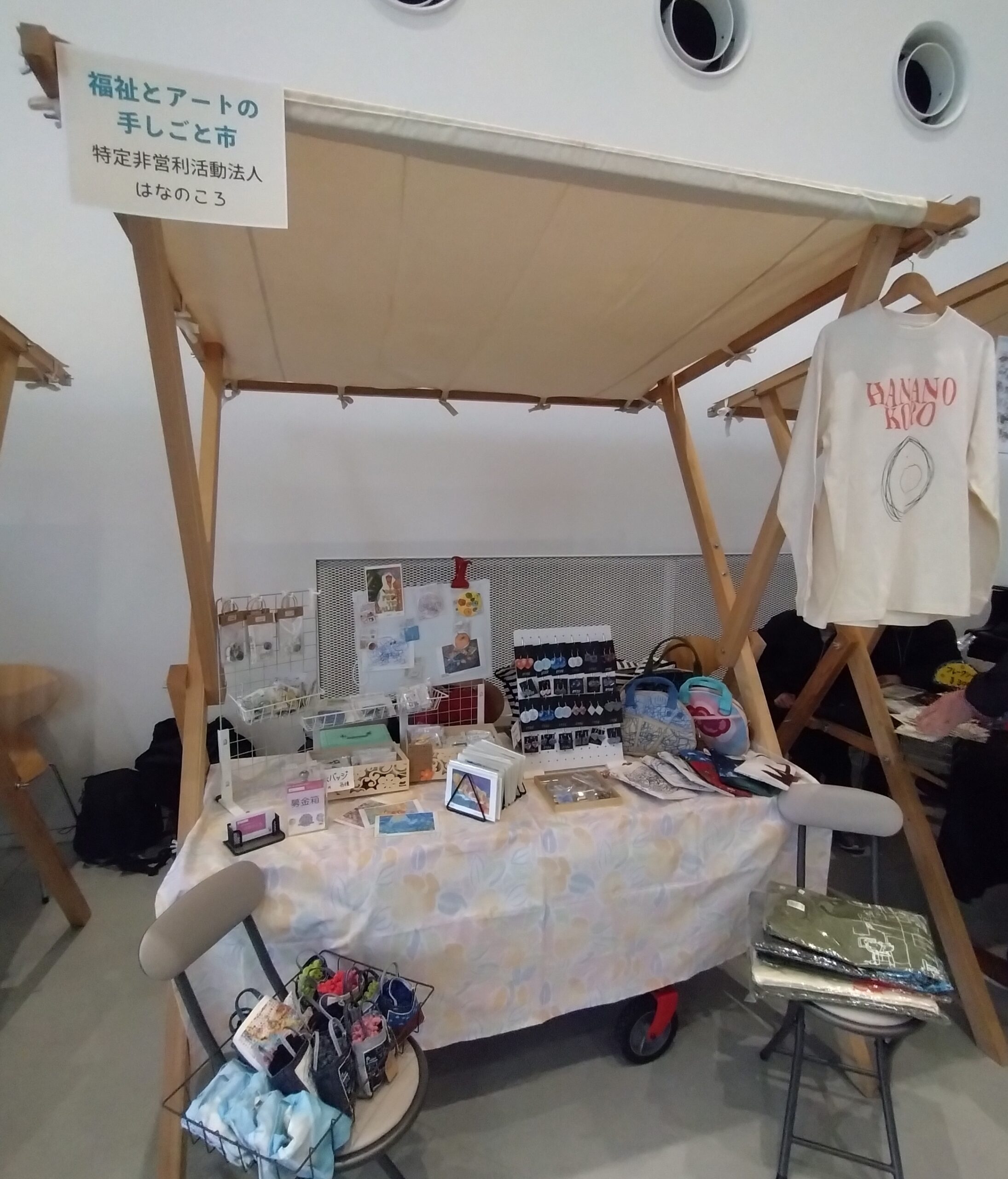 特定非営利活動法人はなのころはこのほど、福島県須賀川市の市民交流センター「tette(テッテ)」で開かれたイベント「出張!はじまりの美術館 福祉とアートのオープンミーティング2026」に出店しました。障がいを持つ作家や障がい者アートに興味のある方々が多く来場し、当法人の活動やアイテムを広く紹介しました。(イベント内容>>>)