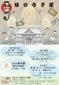 「縁日寺子屋」と銘打つ催しでは、掛け軸や古文書などの歴史資料の展示や、縁日講演としてアクアマリンふくしまの「うなぎのはなし」、旅人牧舎の「馬の雑学のはなし」の時間も。一匡は古代文字の写経を展示します。はなのころサポーターでお手伝いいただいている画家の幡野ゆりさんは八臂弁財天(はっぴべんざいてん)画を披露します。