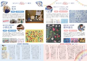 2月上旬に発行し、A4サイズで20ページ、200部印刷。イベントなどで配布するほか、交流ギャラリースペース「はなのころBASE(ベース)」でも置いています。