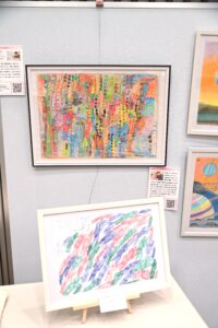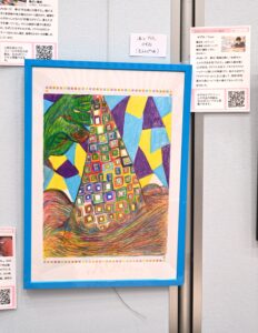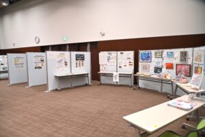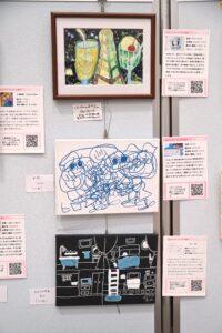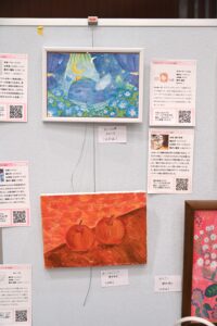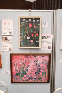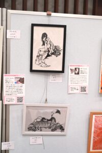 はなのころのブースには作品20点を展示。はなのころメンバーも来場し、自身の作品を見て楽しみました。鈴木智和は自身の作品を来場者に紹介。高校生に作品を気に入られ「プレゼントします」と絵を手渡す場面もあり、とても喜んでいました。来場者には会報誌を配布してアピール。社会活動する団体、企業、イラストレーターらが立ち寄っていただき、取り組みを紹介しました。