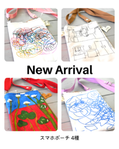 スマホポーチは4種。メンバー3人の作品でデザインした新作です。