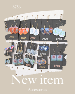 アクセサリーは18種。ハートやダイヤ、サークルなど色々な形のイヤリング7種とピアス11種をそろえています。