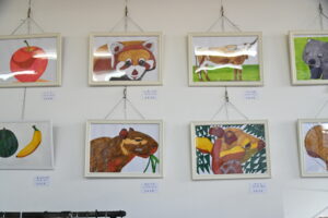 毎週のように「はなのころBASE」に熱心に通う「えむえむ」から「個展を開きたい」と懇願されて企画。3月1〜14日までの会期中、マッキーペンで動物や静物を描いた作品16点を展示しました。