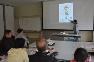 絵本の鑑賞会では、はなのころサポーターズからの解説を交えながらスクリーンに1ページずつ映し、参加者が順番に話を読み上げていきました。生きづらさを感じている主人公が自分らしくいられる居場所を探す物語で、優しさや苦しさ、力強さなどを思い思いに表現した絵を鑑賞。その後、フリートークで交流を深めました。
