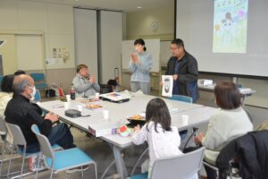 作品の発表では5人が登壇。人と会話するのが苦手だったお子さんも初めて発表に挑みました。その日の朝に折り紙を楽しんでいた際「これを発表したい」と母親に話したといいます。発表では会場から「頑張れ」の声援を受け、お母さんと一緒に参加者の前に立ち、イチゴの折り紙作品を披露。お母さんが代わりに説明し、お子さんはすぐに席に戻りましたが大きな一歩を見せ、参加者から大きな拍手を受けていました。